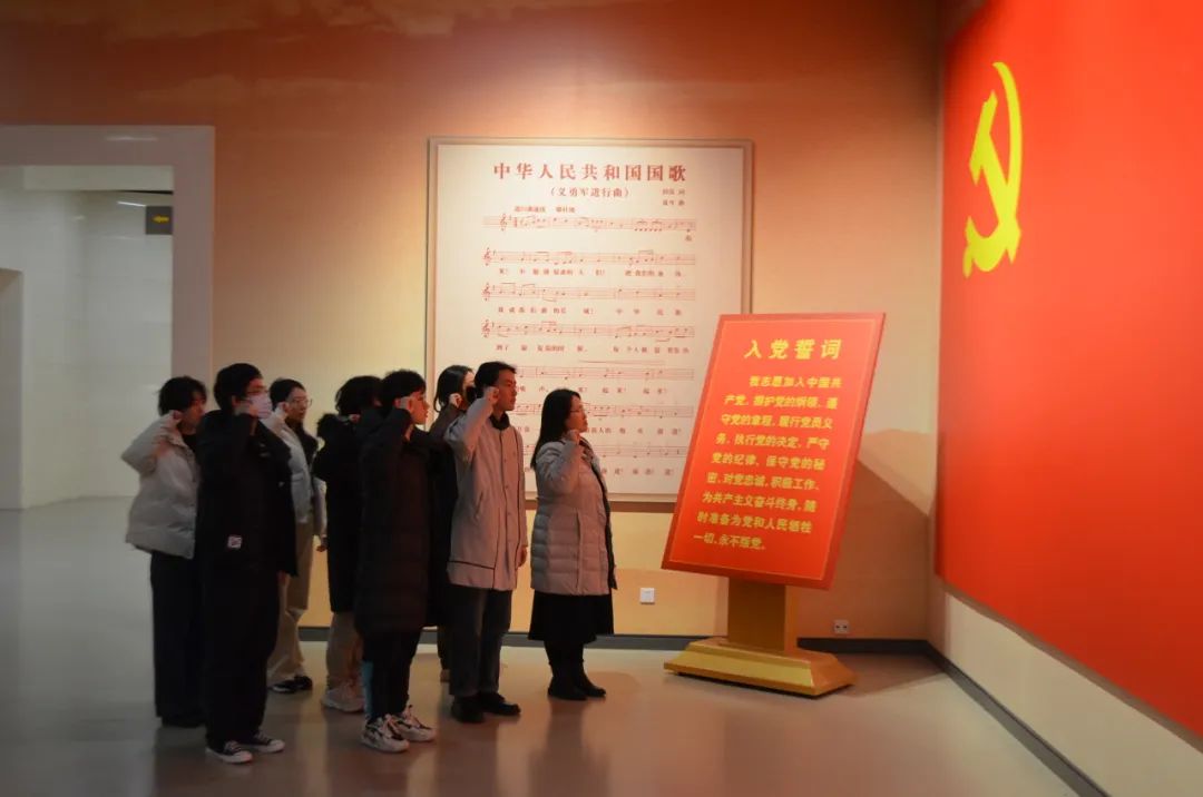 在”伟大胜利厅”内,支部书记刘申琦带领支部党员重温入党誓词,全体党员面向党旗,右手举拳,庄严宣誓,铿锵有力的宣誓声表达了对党的无限忠诚和为共产主义事业奋斗终生的坚定决心。