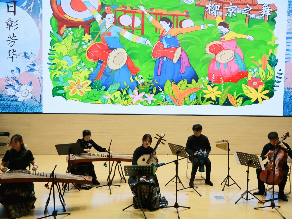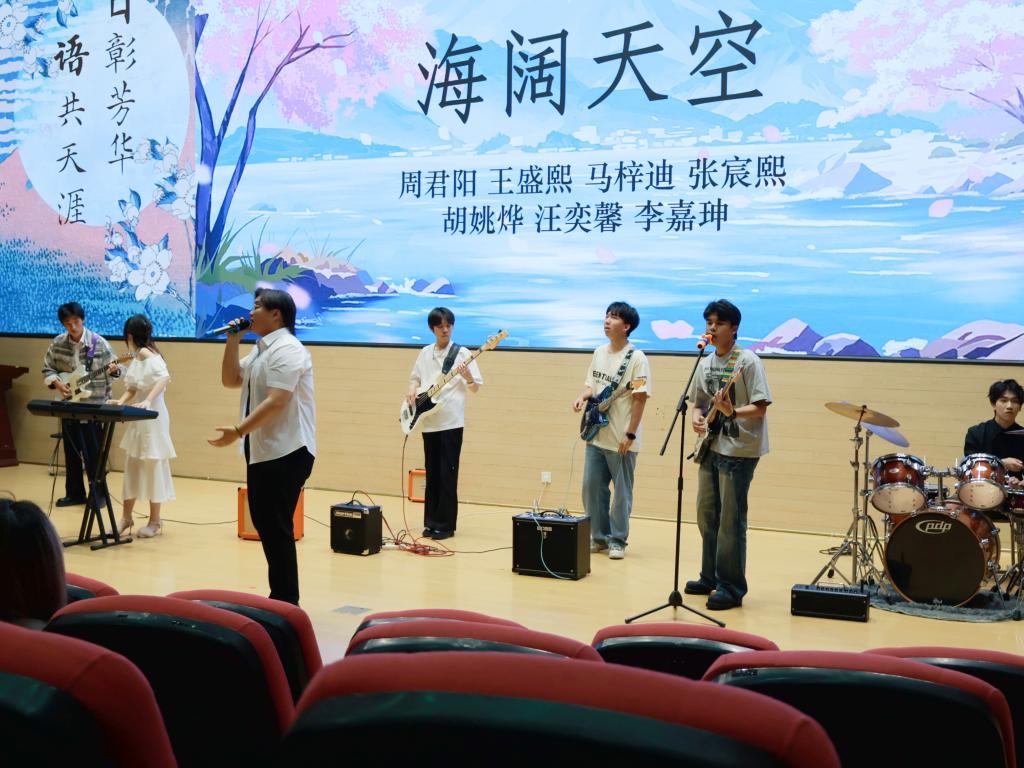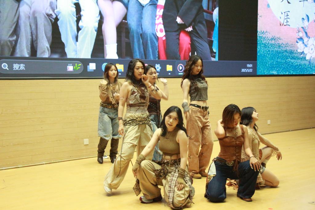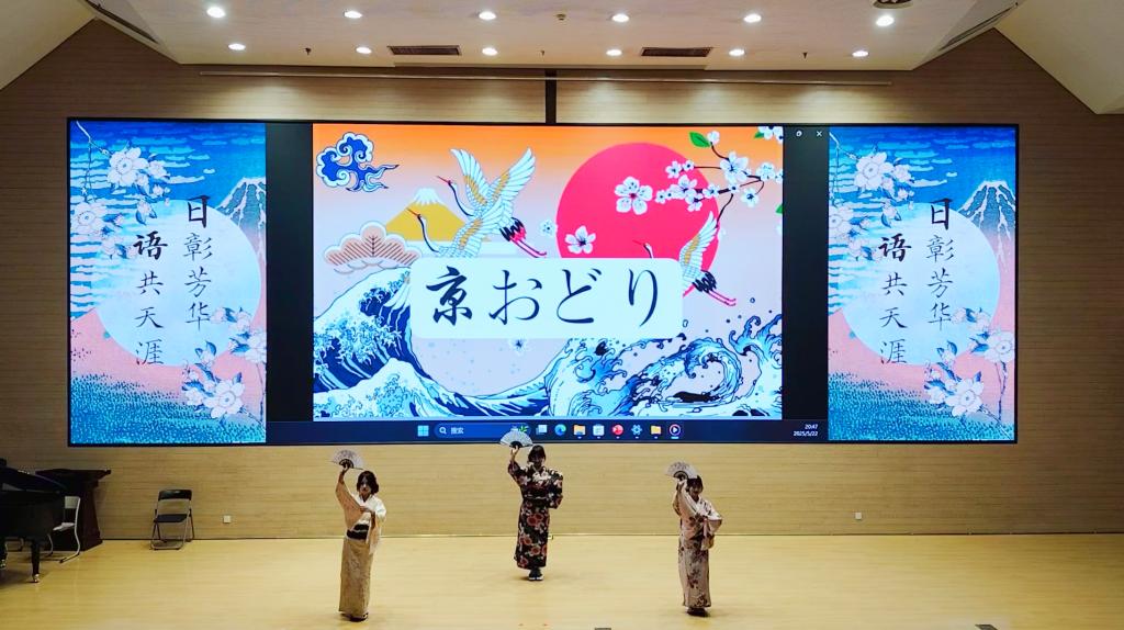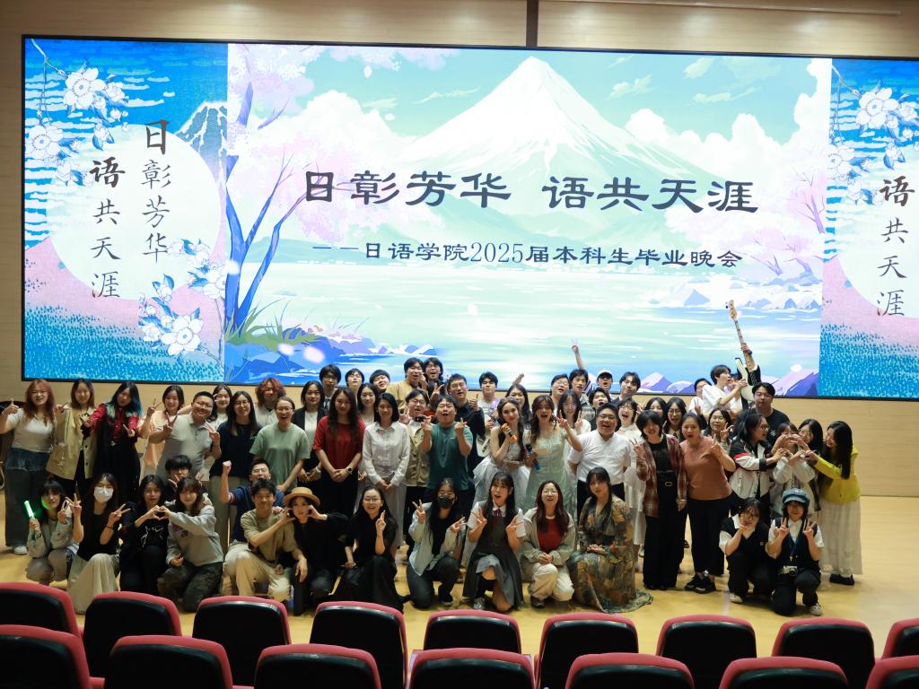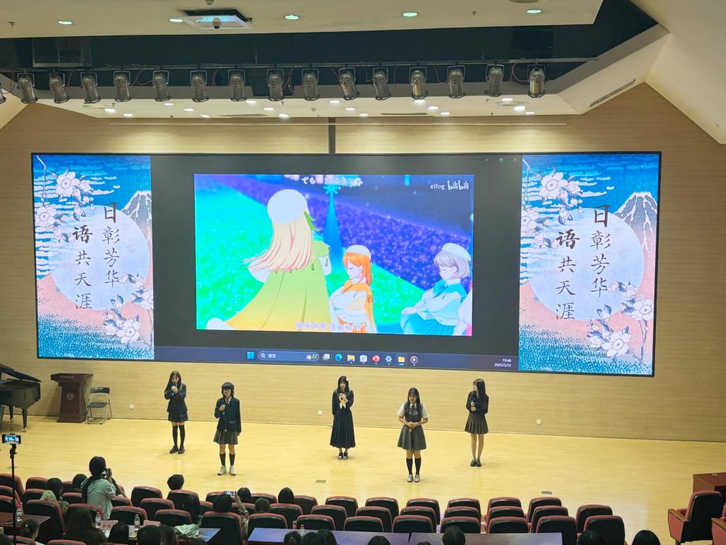 晚会在OF小分队活力四射的群舞《Diamond》中翩然启幕,轻盈的舞姿瞬间点燃全场。歌曲《如愿》、《スパークル》、《時の流れに身をまかせ》《Starlight Prologue》《给电影人的情书》《Destiny》以温暖嗓音叩击心扉。舞蹈《Gee》《Altun Tataymu》《smiley》《京踊り》用灵动节奏点亮舞台。器乐与歌舞交织,《柳京之舞》《埃尔加e小调大提琴协奏曲》《波兰舞曲第六号 英雄》《假面舞会》让观众沉醉于音符的海洋。日语话剧《菜鸟刑警ルーキー!》的精彩演绎,将现场气氛推向欢乐巅峰,更展现了日院学子的专业水平。最后,热血澎湃的《海阔天空》为晚会画上句点,激昂旋律中饱含对未来的无限期许。满场星光随旋律摇曳,有人红了眼眶,有人紧握双手。这场承载着樱花色回忆的晚会,终在“前程似锦”的祝福中落幕。愿此去跃入人海,各有风雨灿烂——青春永不散场!