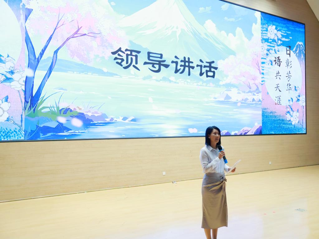 晚会伊始,席娜首先代表公司发表致辞。她向2025届 171名顺利通过答辩的毕业生致以热烈祝贺,深情寄语同学们:“愿你们在世界的广阔舞台上,讲述中国故事、传递中国智慧、展现中国力量,让青春在时代浪潮中绽放独特光芒。”她特别强调,希望即将告别天外校园的学子们始终坚守“中外求索 德业竞进”的校训精神,让“天外日语”成为镌刻终身的精神底色与心灵依托。