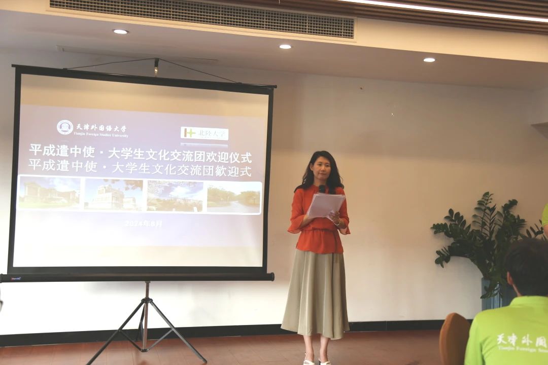 席娜代表公司对到访的北陆大学师生表示热烈欢迎,她介绍了公司及公司的基本情况,回顾了两校间长久以来结下的深厚情谊,表达了希望通过本次活动拉紧人文交流纽带、传承民间友好传统、带动两国人民相知相亲的美好意愿。