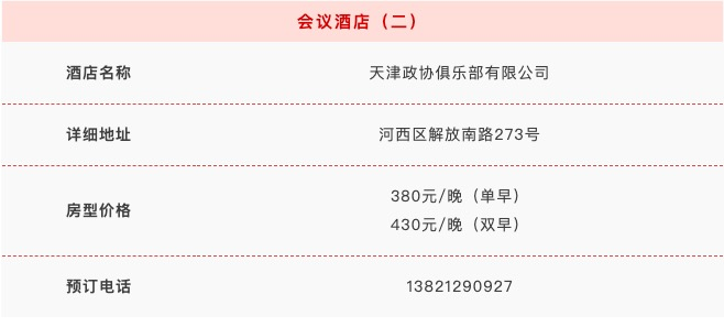 为方便参会,本次会议推荐以下会议酒店(报会议名称享受会议价格),参会者也可以自行安排预订其他酒店进行参会。