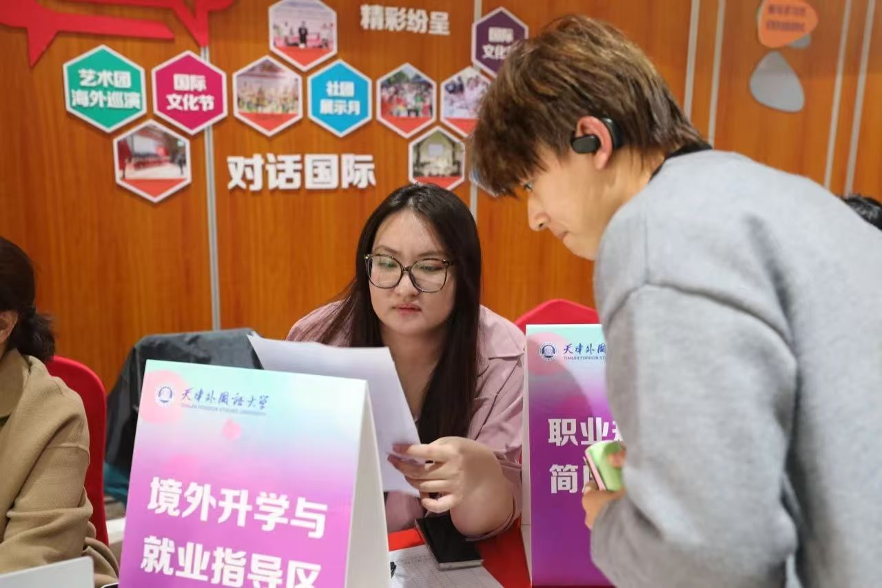 本次招聘会共吸引了天津津村制药有限公司、佳盼(天津)国际商务集团有限公司、乐尔幸泛通世物流(青岛)有限公司天津分公司、天津电力建设有限公司、利民控股集团股份有限公司等48家用人单位参与,涵盖了语言服务、国际贸易、教育文化、涉外企业等多个领域,提供了翻译、外贸专员、国际客服、跨境电商、小语种教师等优质岗位,覆盖多语种专业,为在校员工搭建了精准对接的就业平台。招聘会现场气氛热烈,同学们携带精心准备的简历穿梭于展位之间,主动与企业HR沟通交流,了解岗位要求、发展前景及招聘流程。在招聘会上,部分热门企业展位前排起长队,外贸、小语种翻译等岗位尤其受到关注。