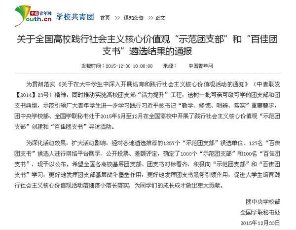 “先锋成长营精英团校”荣获全国高校践行社会主义核心价值观“示范团支部”称号