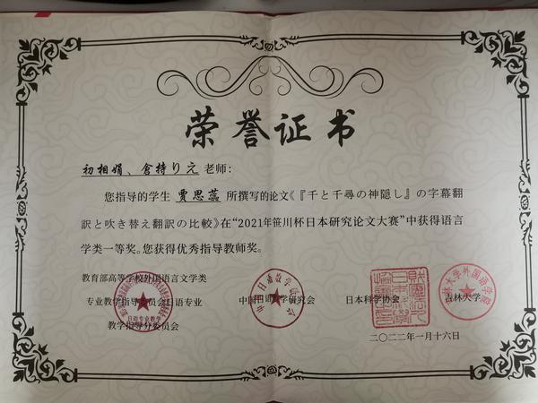员工获“《人民中国》杯”日语国际翻译大赛获一等奖