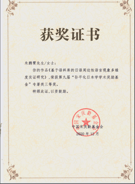 荣获第九届“孙平化日本学学术奖励基金”专著类三等奖