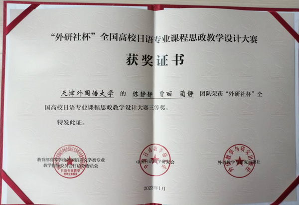基础日语教学团队获批天津市级教学创新团队,日语翻译理论与实践教学团队入选天津市级教学创新团队